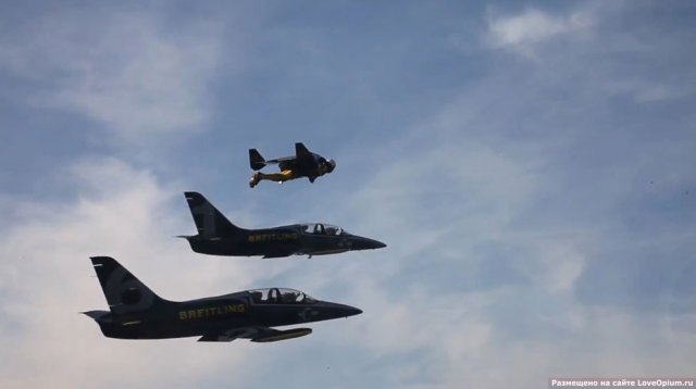 Швейцарский изобретатель каждый раз усложняет условия полета. На этот раз «летающий человек», надев свой знаменитый крылатый костюм, совершил полет над Альпами в одном строю с боевыми швейцарскими истребителями L-39C Albatros!